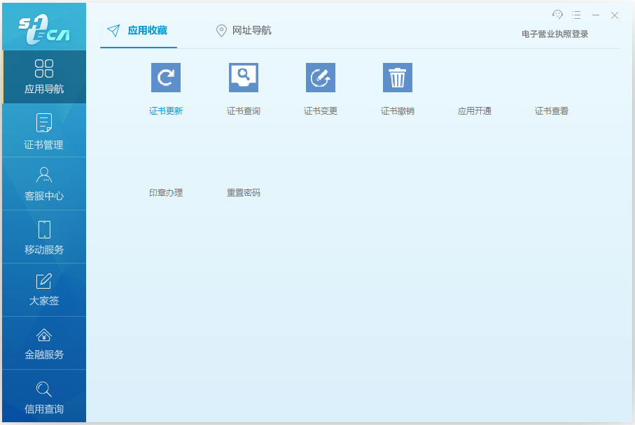 2、“应用收藏”标签页中包含用户收藏的市政服务网站链接的图标(需要用户手动添加),以及一些数字证书使用辅助工具软件。