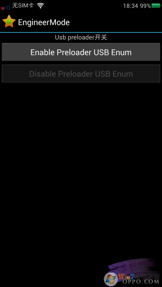 如果你的手机还能正常开机,线刷要简单点,打开拨号器,输入*#872#,选择Enable Preloader USB Enum(方法来自OPPO U701升级4.0官方线刷教程)