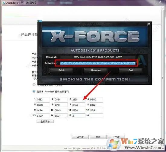 6、点击“我具有Atutodesk提供的激活码”将生成的激活码复制到入内,点击NEXT