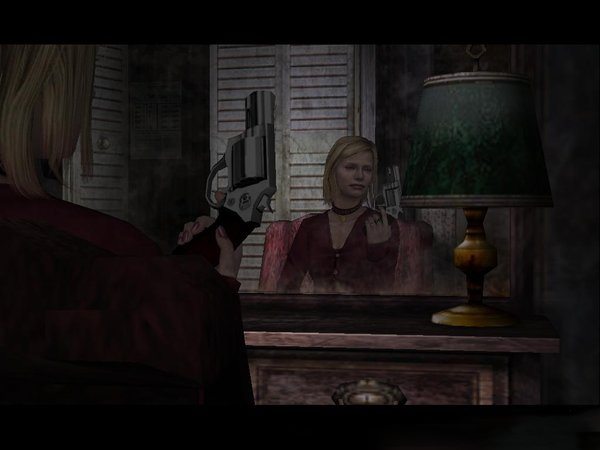 这一点《寂静岭》一代已经表现得非常有水平。新的游戏只是变得更加灵活一些,例如通过视角变化,可以将詹姆士和自己之间的距离变得十分宽,通常也可以默认一个特定位置面对他自己。实际上,这并非一个简单控制,它需要根据一定的事物规律来进行。视角可以转换到一边,或者跟随詹姆士移动。变动一个实体,在它的肩部有所触觉,这时视角就可以围绕詹姆士转变,在他周围旋转之后,就会出现一个圆形图案。同时,玩家也可以按下肩部按钮,观察一下这时的詹姆士是静止的,还是移动的?接着就又开始轻松地进行视角变换了。