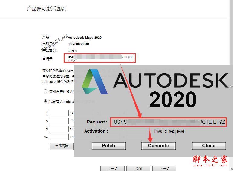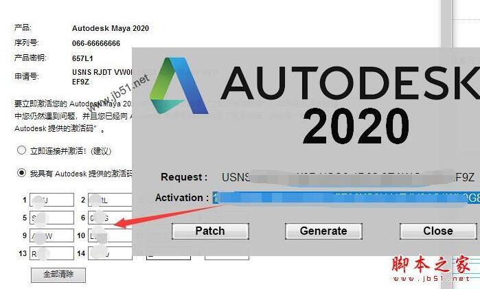 将申请码复制到注册机request中,点击generate它会计算出激活码,见winwin7分享的图片: