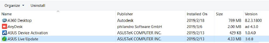 方法2: 进入 [控制面板] -> 打开 [程序和功能] 然后查看ASUS Live Update版本。