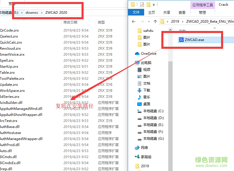 5.完成安装后,把ZWCAD.exe 复制进去直接替换;