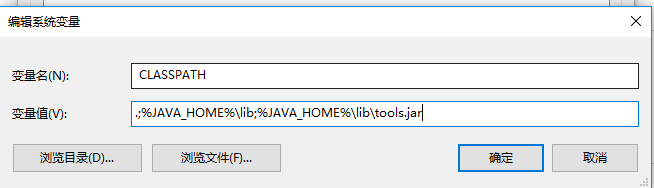 15.再点击新建,新建一个CLASSPATH 下面输入值.;%JAVA_HOME%\lib;%JAVA_HOME%\lib\tools.jar 然后点击确定
