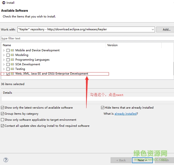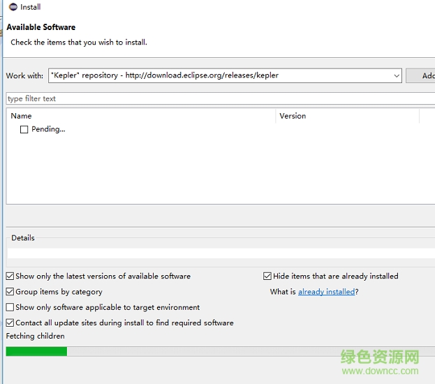 6.然后上面输入 "Kepler" repository 下面输入http://download.eclipse.org/releases/kepler 最后点击add