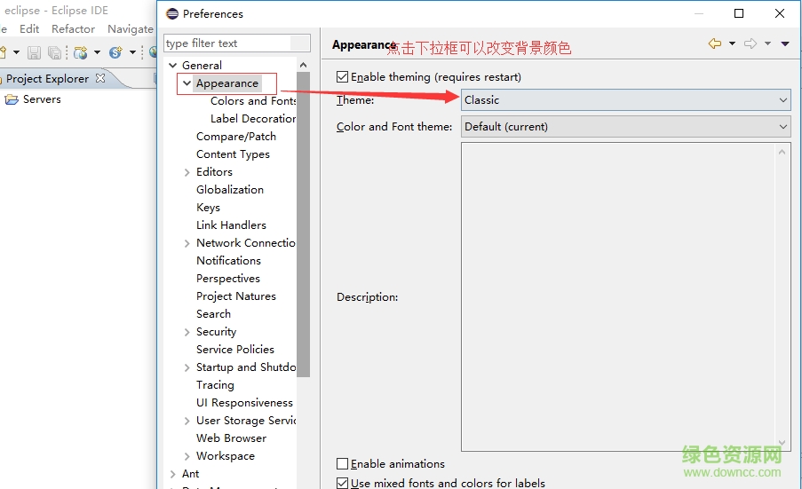 5.找到Appearance点击右侧的Classic下拉就能选择背景色了