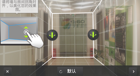拍照后,软件会自动对照片进行测算,几秒钟后你将看到这个界面。这时需要手工进行微调,只需要通过拖拉白线,对其空间的几条交界线,大概对准后点击屏幕右下角的尖括号。