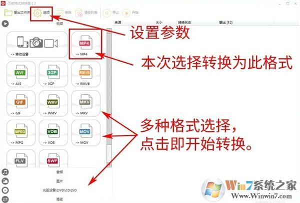 左边选择要输出格式MP4,同时你也可对此格式输出进行设置。