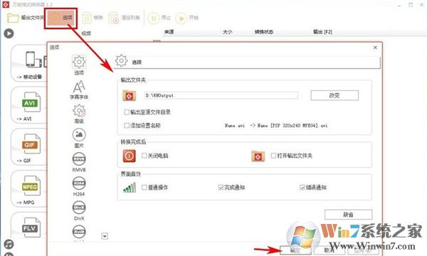 在【选项】处,设置自已的参数,如:输出路径等