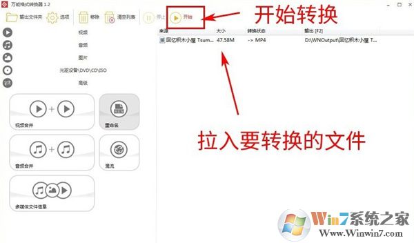将要转换的视频拉入首页右边空白处。