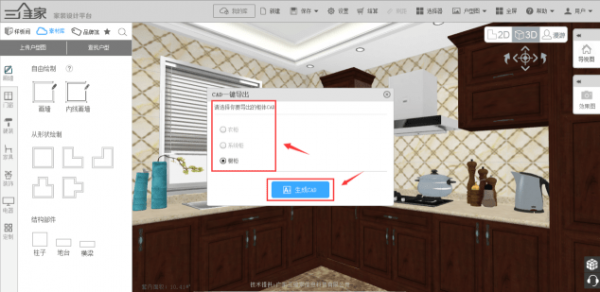 定义:柜体导出CAD的方法有两种,一个是无需插件即可一键导出,一个是需要三维家助手插件,接下来讲解需要三维家助手插件的方法。