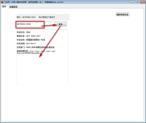 下载打开软件后输入标准的代码或者关键词,点击查询,下方会出现标准细则。