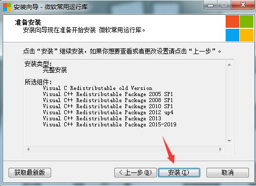 5、然后就可以点击“安装”稍等片刻,微软常用运行库合集就安装完成啦!