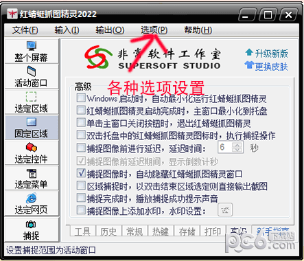 首先进入软件选项的常规选项和高级选项设置好捕捉的条件,方便捕捉。并可设置捕捉水印和时间标记。