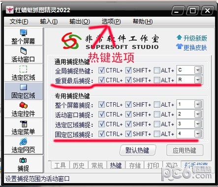 其次进入程序选项--捕捉热键,设置好开始捕捉和重复捕捉的热键,注意不能和其他应用重复热键。、