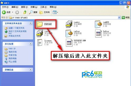 1、下载完AHCI驱动后,解压缩出现P43 45 AHCI文件夹然后进入选择与电脑系统相匹配的文件夹。进入后再选择PREPARE文件夹
