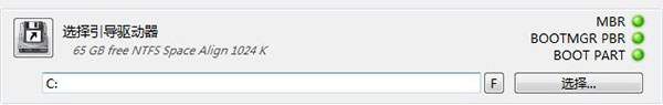2、选择引导驱动器即引导所在的盘一般是带100M隐藏分区的就选择那个,如果没有隐藏分区情况比如你系统装在C盘那么引导也选择C盘