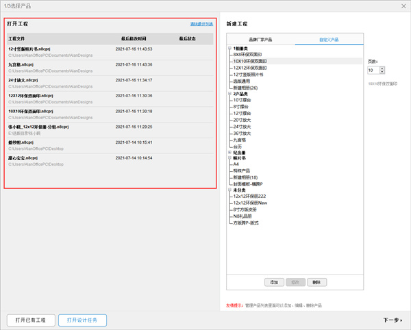 5、增加最近设计工程文件列表,方便直接快速打开近期工程;