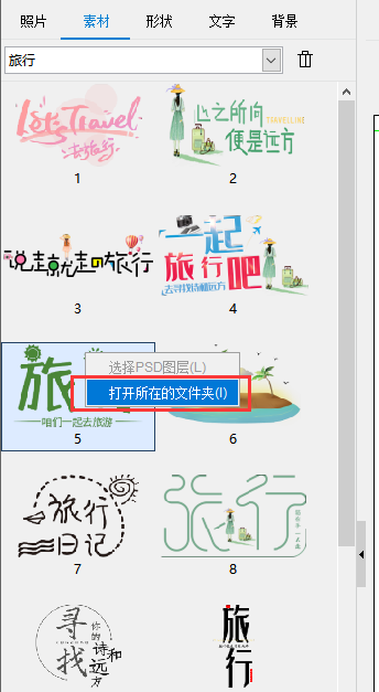 6、增加素材栏文件右键查找所在位置的功能;