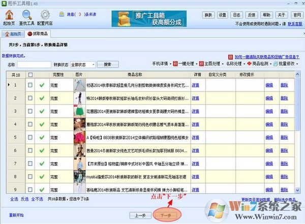 如显示抓取到的宝贝,则成功抓取,然后点击“下一步”如下图所示: