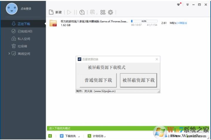 迅雷下载模式切换工具(普通资源,敏感[版权]资源) v1.0绿色版166KB